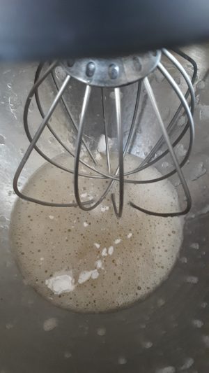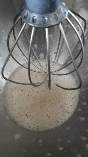 - Place the Bean Juice into the mixer with a whisk attachment attached