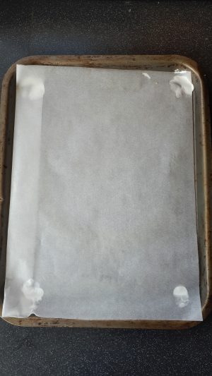- Whilst that’s happening line 2 baking sheets with Parchment, I DO NOT USE SLIPMATS so I cant comment but feel free to try