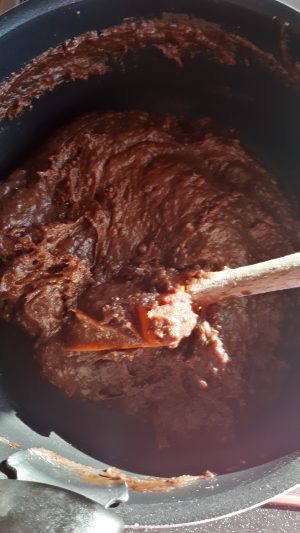 - Once boiling using a spatula continue to stir the pudding round the sides and the bottom using a folding motion.