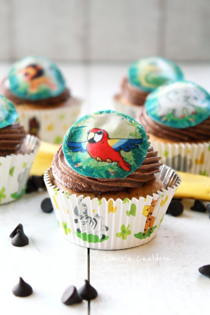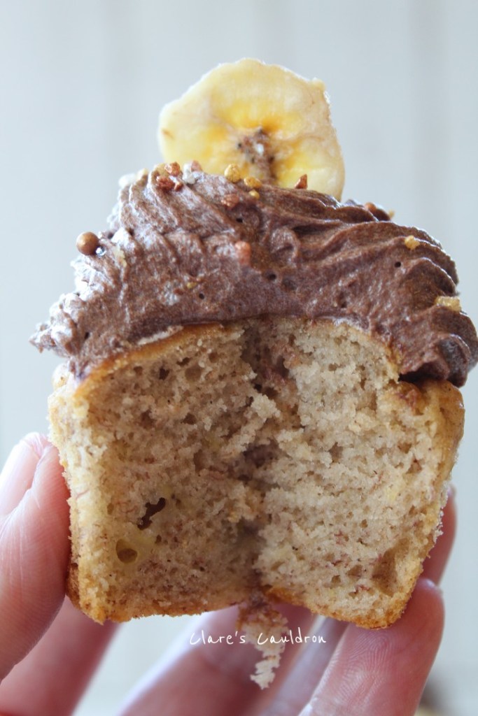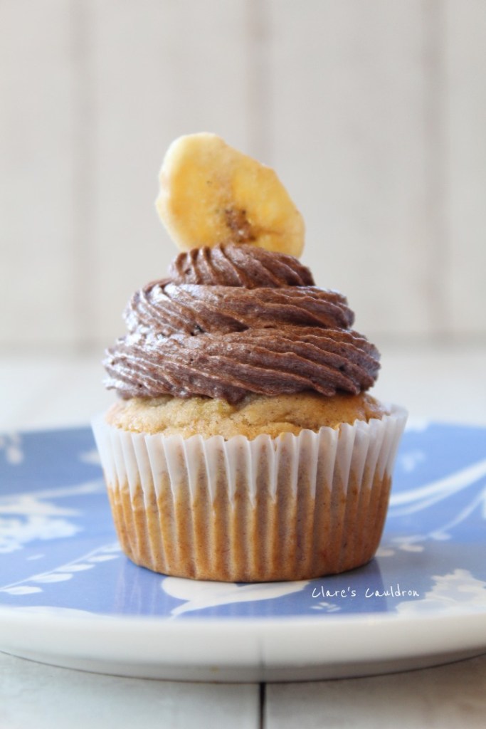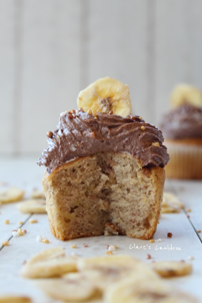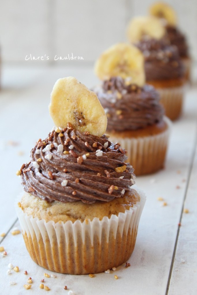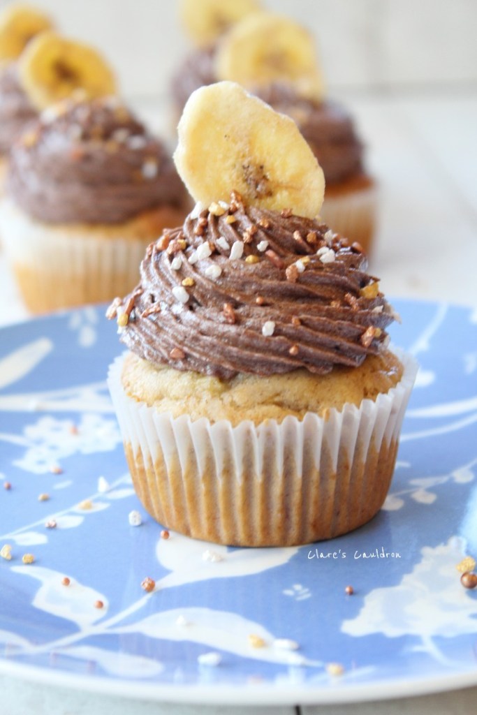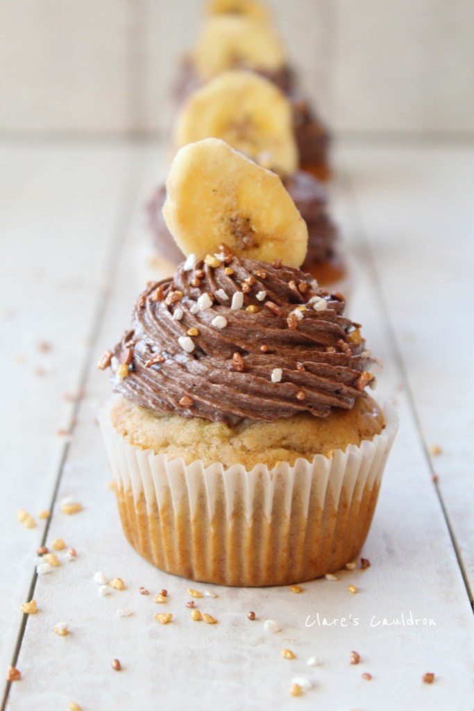 A classic combination of banana cupcakes and rich chocolate, in a cupcake GF, DF V