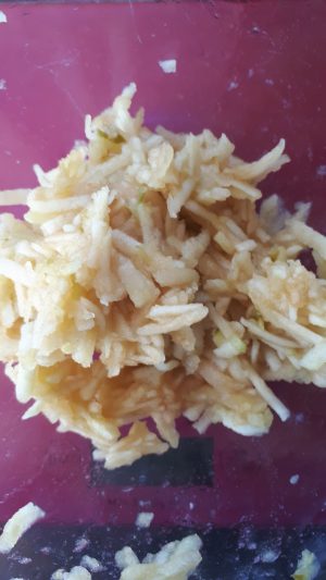 - Grate the Apple and add a tsp of lemon juice and mix it threw set aside
