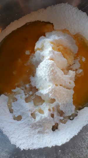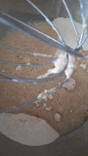 - Add to the mix and whisk with a balloon whisk on medium speed for 3 minutes ( number 3 on Kitchen Aid or medium hand whisk