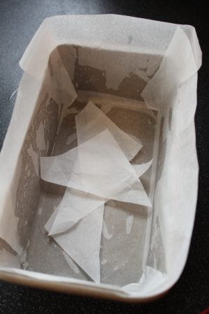 2. Grease and line tin as below I find it easier to lay it and cut into the corners on a flat surface , please make it as neat as possible you don’t want a dogs dinner and you will feel my evil glare