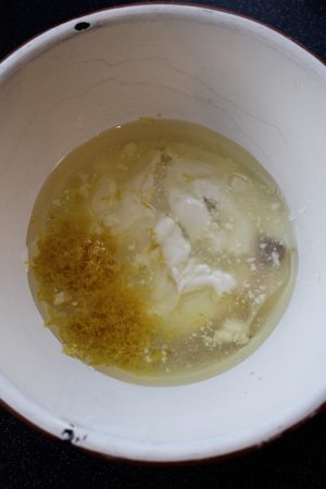 7. Mix the Yogurt, oil lemon Juice , Milk, Zest and Vanilla in a bowl until combined with a whisk
