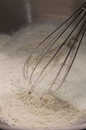 1. Add Flour , Baking Powder, Xanthan ( if using ) in a bowl with a whisk until Incorporated in Stand Mixer Bowl