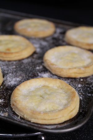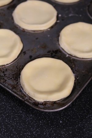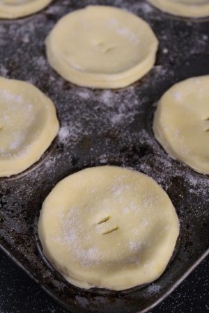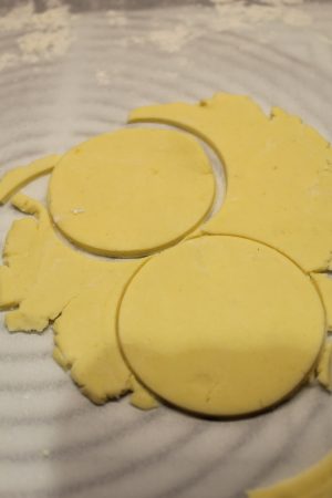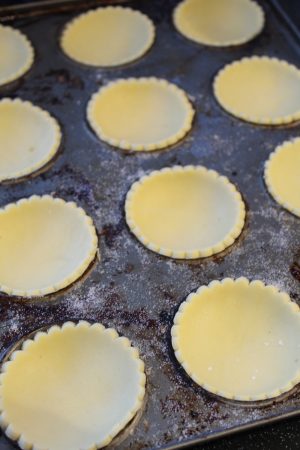 15. Place the discs in the tray and press down gently, if they crack just press the dough back together to smooth the disc back…..dont worry they will be fine you pastry is just a little to cold or too thick