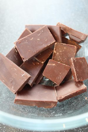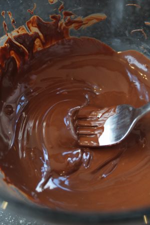 - Melt 120g of chocolate in microwave in 10 second bursts or bain marie ( bowl over simmering water until just melted and leave to cool }
