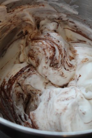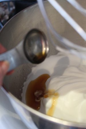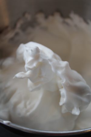 - Add maple Syrup and vanilla to last minute of aquafaba whisking