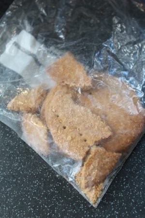 - Whilst Aquafaba is volumising……..smash biscuits with rolling pin in a freezer bag , good stress relief cos they turned up ššš