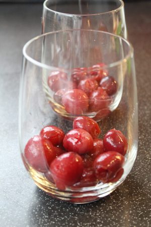 - Spoon cherries into glass , followed by biscuit crumb ( yes I forgot to get the crumb shot !!!!)
