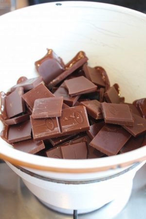- Melt 120g of chocolate in microwave in 10 second bursts or bain marie ( bowl over simmering water until just melted and leave to cool }