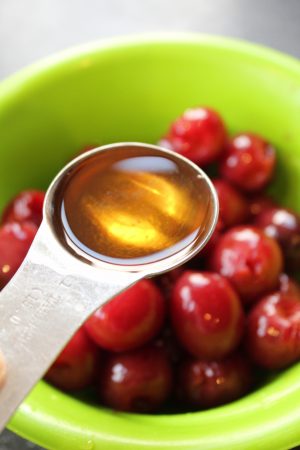 - Spoon cherries into glass , followed by biscuit crumb ( yes I forgot to get the crumb shot !!!!)