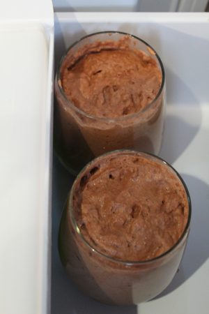 - Place the chocolate mush on top of the cherries and biscuit, with a spoon and put into freezer for 30 minutes