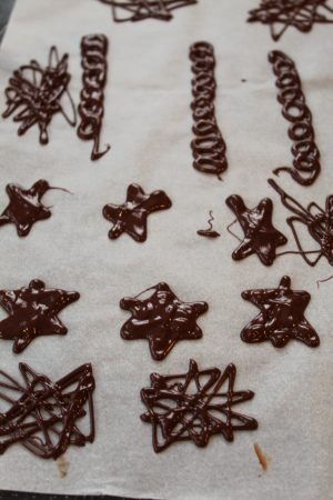 - Using a piping bag or freezer bag spoon the chocolate in, cut a very small corner of the bag…….REALLY SMALL