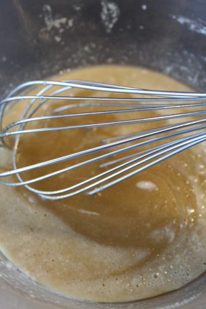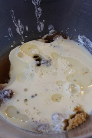 - In a bowl mix the Brown Sugar, Milk concoction, Oil and vanilla until combined