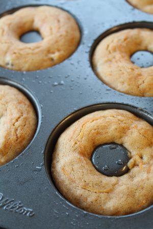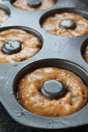 - If making donut holes, pipe or spoon into a well oiled mini muffin tin and bake for 10 minutes