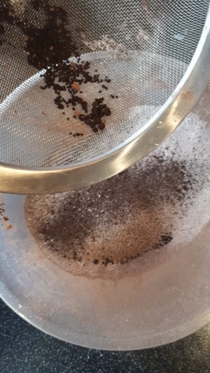 - 75 g Unsweetened Cocoa ( used 50 g Cocao and 25 g Black Cocoa )
