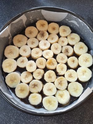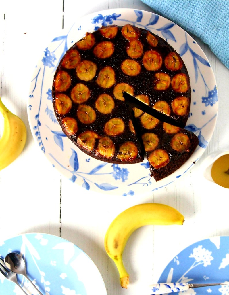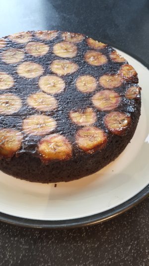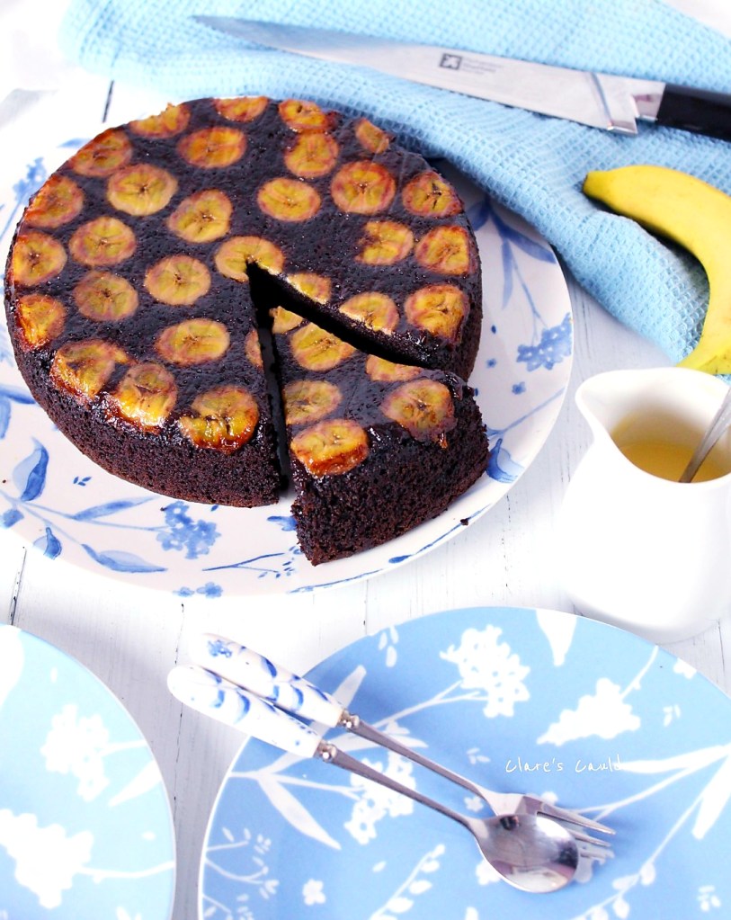 So with that I’m giving you a Banana Caramel Chocolate Upside-down cake.