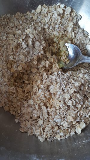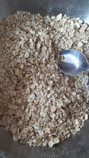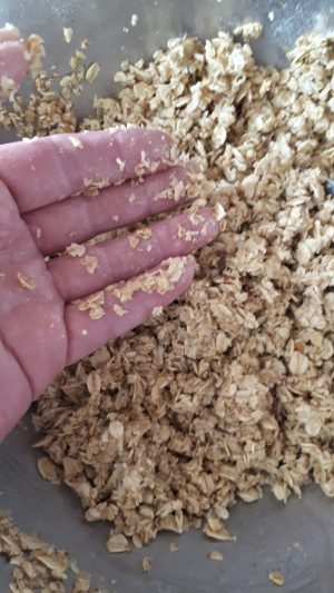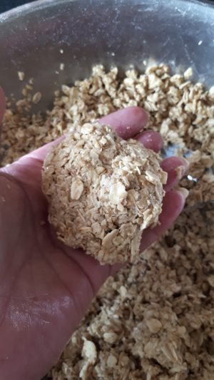 - After 30 minutes test the oat dough mix take a hand full and make sure it stick together , it should be sticky but not to wet