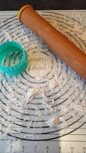 I thought this would be an easy bake……. yes really, but rolling it out can be frustrating til you realise just keep pushing it together ……its a sturdy beast this dough you could use a hammer it will still work !!!!!