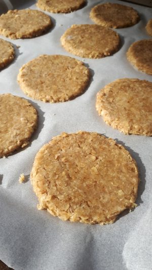 - Cut out the Oatcakes with your cutter and transfer each one to the baking sheet, they don’t need much room they don’t spread