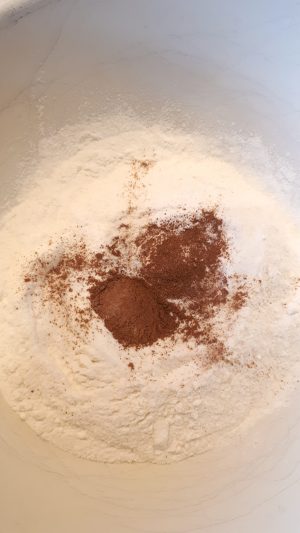 3. Sift the flour, baking powder and xanthan gum and cinnamon into a bowl