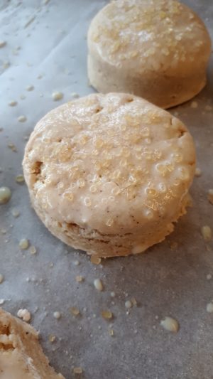 14. Brush the tops with milk lightly and sprinkle with granuated sugar ( i used demerara )