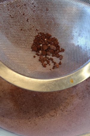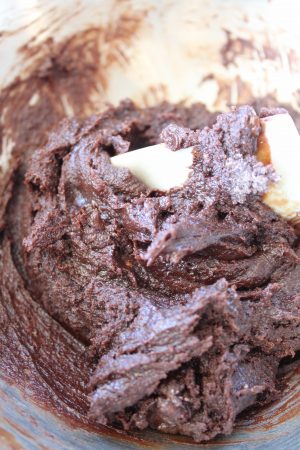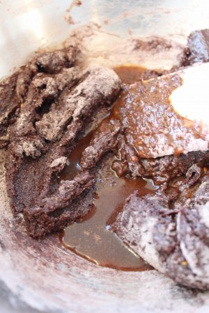 12. Add the tbsp of hot coffee or water to the dough and mix til combined