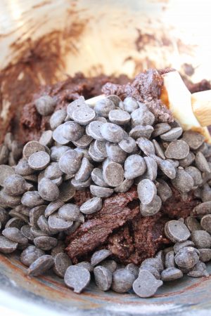 21. Take out of the oven and drop some more choc drops on top (just a few…maybe 3 each cookie)
