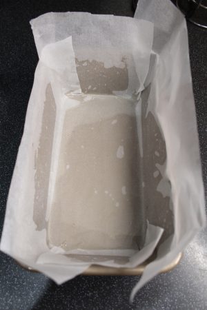 2. Line a 2lb baking tin with parchment paper