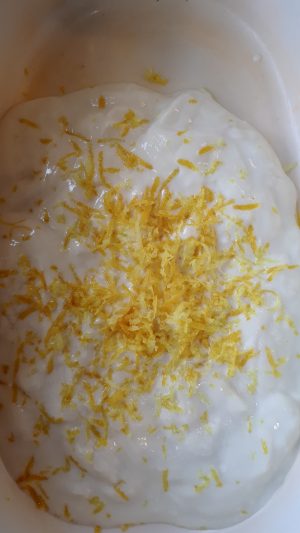 5. Grate the lemon zest into the yogurt mix and set to one side