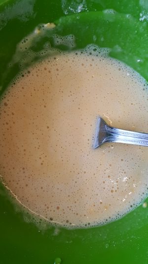 6. In a small bowl mix the chickpea / besan flour with 6 tablespoons of water until frothy and combined