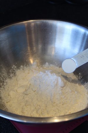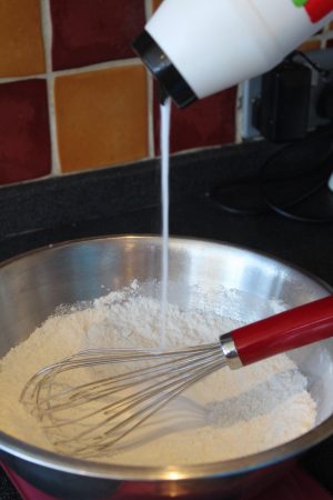1. In a large bowl add the flour and then the xanthan gum
