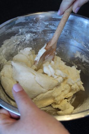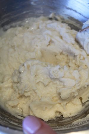 7. Keep mixing it will come together, if necessary add amnextra tablespoon of flour as not all flour blends are the same, but one at a time don’t go mad and give it time to come together till it looks like this