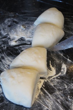 10. Knead until it become smooth adding a SMALL amount of flour to hands and surface as it becomes sticky