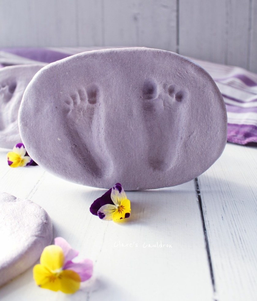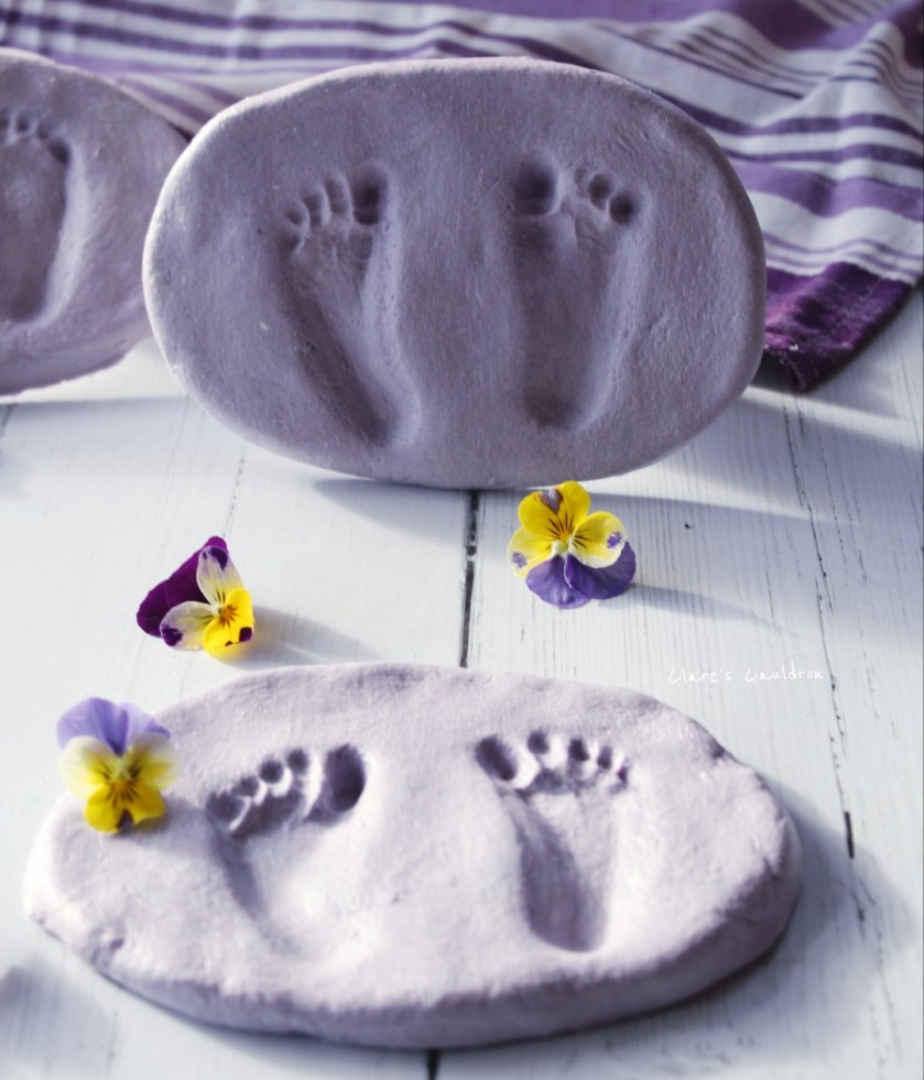 13. Divide into 4 ( in our case or as many as you want in shape and size, bit of a mismatch here as The Cauldron Apprentice actually decided to add the colour after as a spur of the moment šŸ˜‚šŸ˜‚ šŸ˜‚. Shes the crafty one !!!šŸ™ˆ)