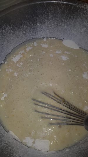 12. With a hand whisk mix until combined and lump free, batter is quite thick