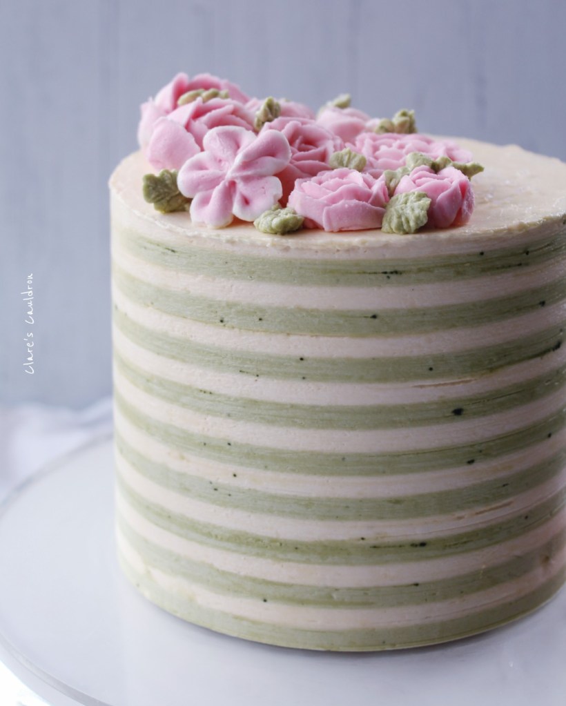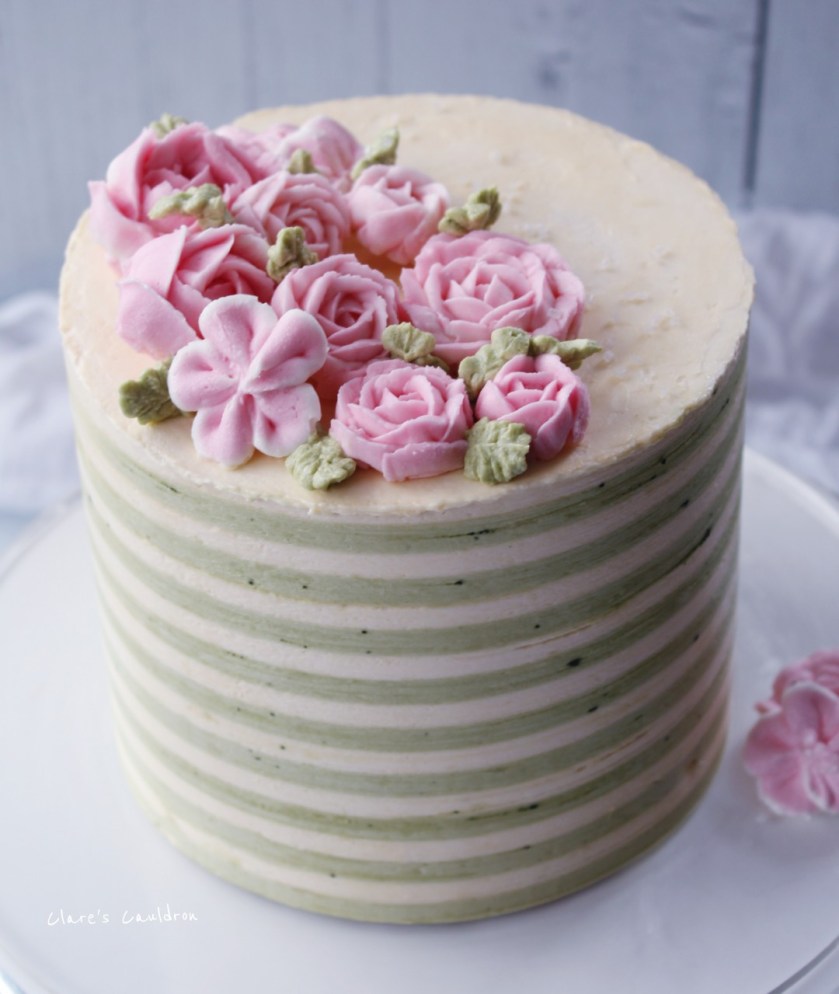 This cake was part of one of my monthly challenges on My Baking Group, so of course I ramped it up to stripes and Buttercream Roses…… just as you do !!