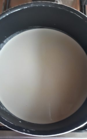 - Continue to cook and whisk on a low heat for another 3 minutes it will be thick and blobby