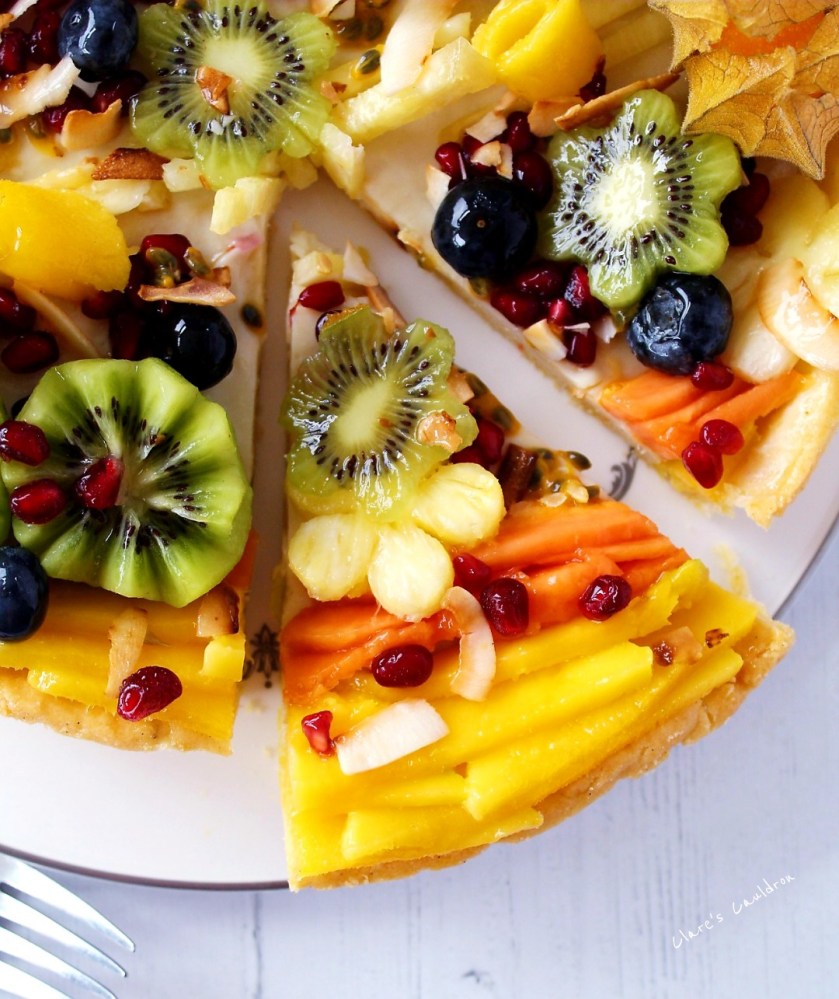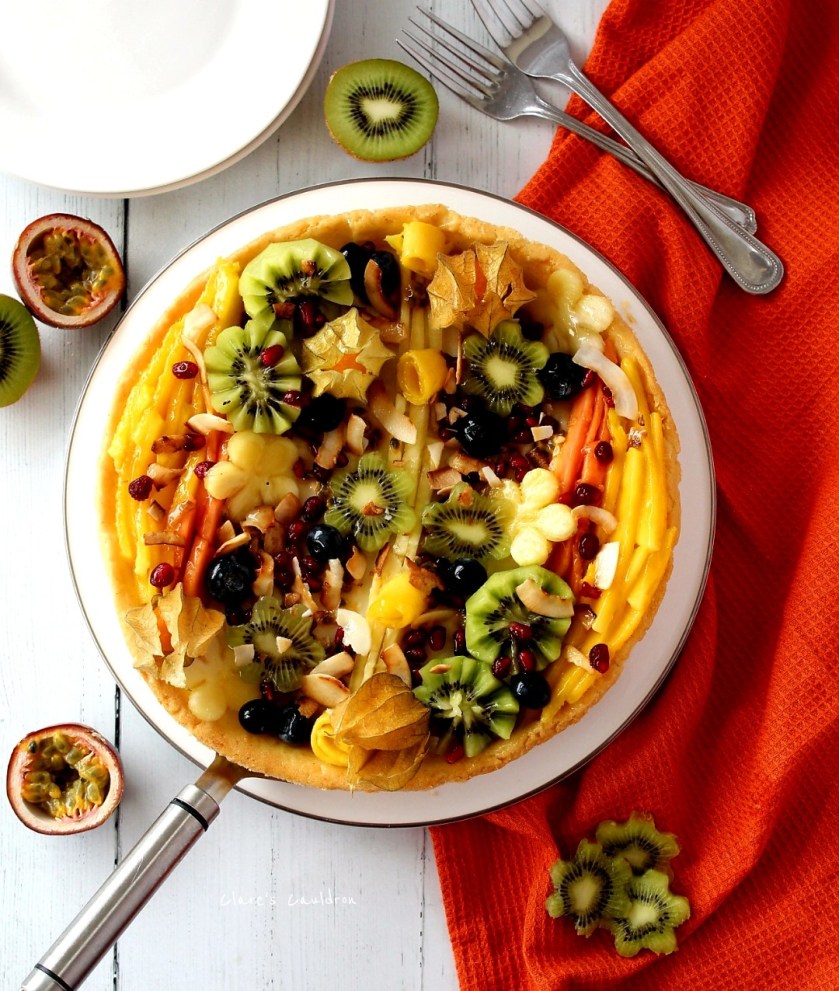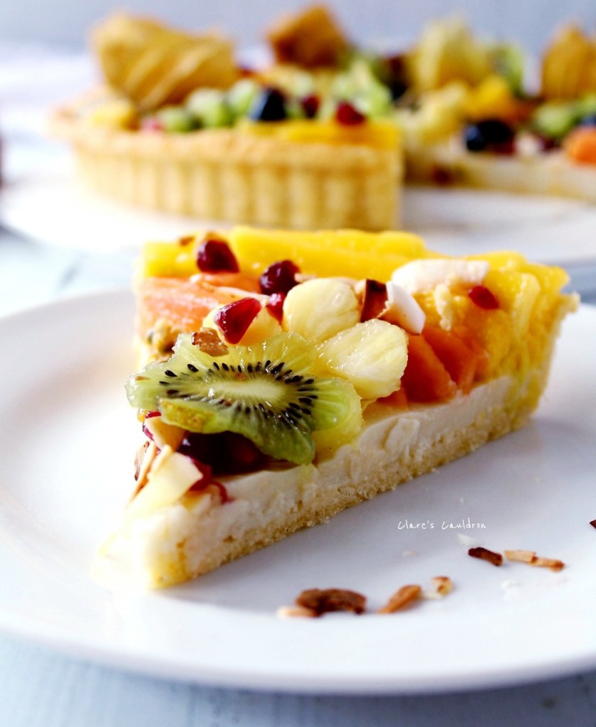 A Tropical Fruit Tart with a Coconut Pastry Cream and Pate Sucree inspired Pastry
