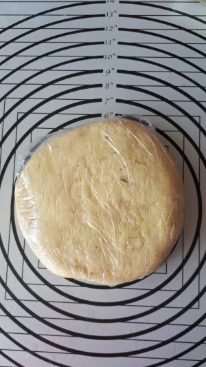 - Press the dough together, turn out onto some cling film and wrap in a disc