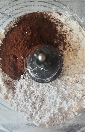 - Add the cocoa powder, and Icing sugar and pulse to combine