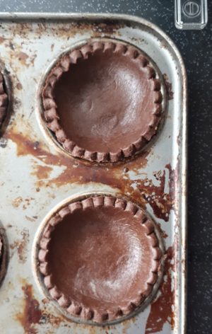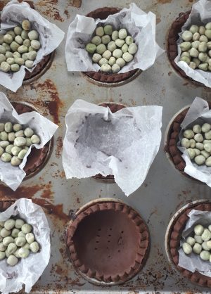 - Crumple Squares or baking paper and press into each case, fill with baking beans and bake in oven for 20 minutes until pastry is set firm