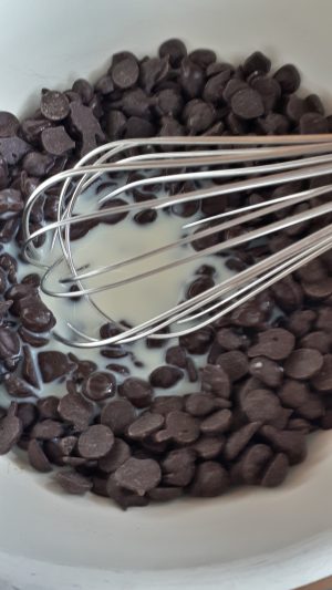 You will notice from the recipe if you have ever made a standard ganache that the usual 1:1 is not the case . milk is always half or less of the weight for chocolate for vegan ganache ( as in drips et) and in today’s recipe slightly less as I wanted it a little firmer