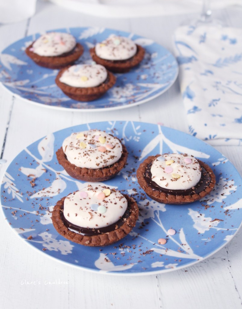 Rich Chocolate Shortbread Tarts with a Silky Chocolate Ganache and of course Cream