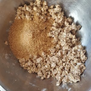 The key to a good crumble is Demerara sugar , I believe this is Turbinado Sugar over the pond….the bigger sugar crystal and light caramel flavour , give the crumble a beautiful texture and smooth flavour