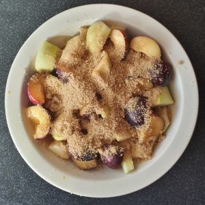 - Bake for 30/40 minutes depending how soft you require your fruit ( I like a slight bite left in mine ) 12.If baking for 40 minutes tent the crumble on the top with foil to prevent burning