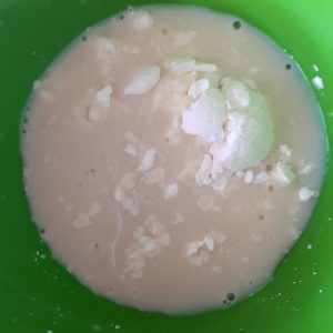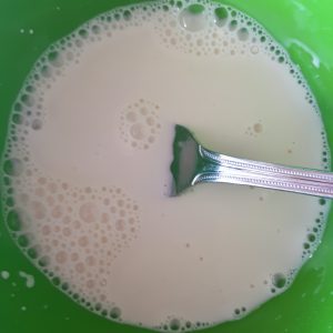 - Poor half of the hot milk onto the paste stirring as you do this.