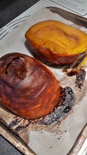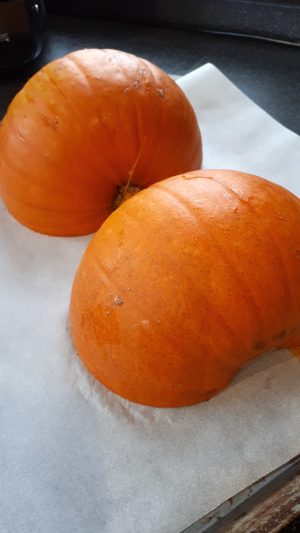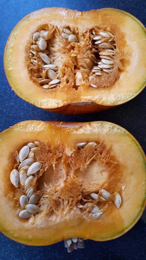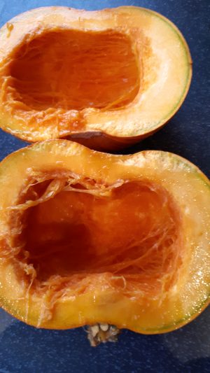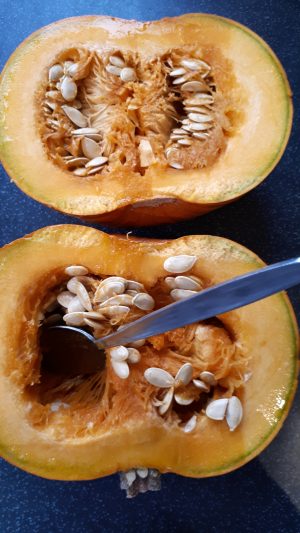 - Cut Pumpkin an half….carefully and scoop out the seeds