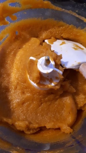 - Scoop put flesh and blitz in a food processor or with a hand blender or potato masher until smooth